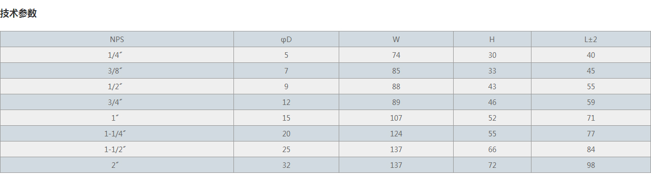 | NPS | φD | W | H | L±2 |