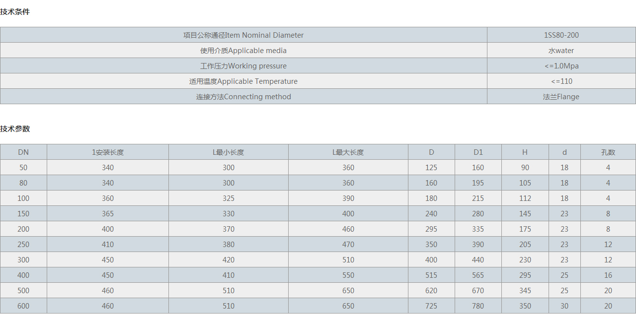 項目公稱通徑Item Nominal Diameter 1SS80-200